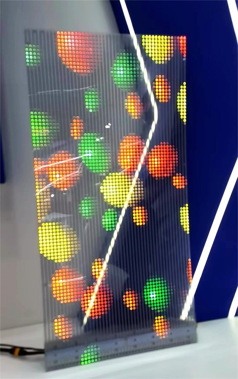 LED贴膜屏采用特定裸芯片,将LED元器件固装在高透PCB板上,通过盖浇工艺,可将显示模块整合成3mm的可发光显示的高透光学基板,具有超薄轻便、柔性透明、容易安装等特点,应用场景非常多样化。