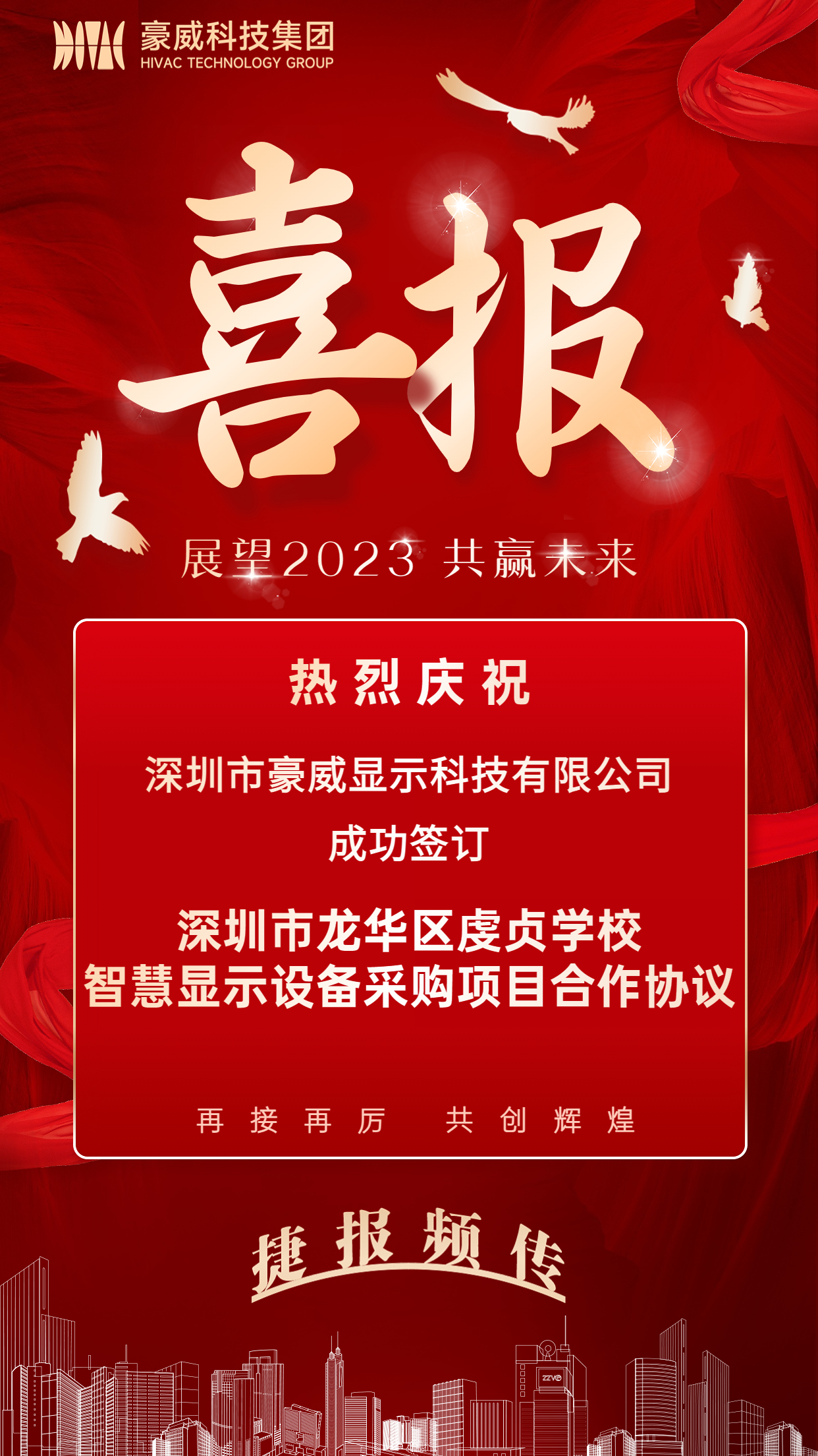 【捷报频传】永利yl23411与深圳市龙华区虔贞学校成功签订智慧显示设备采购项目合作协议!